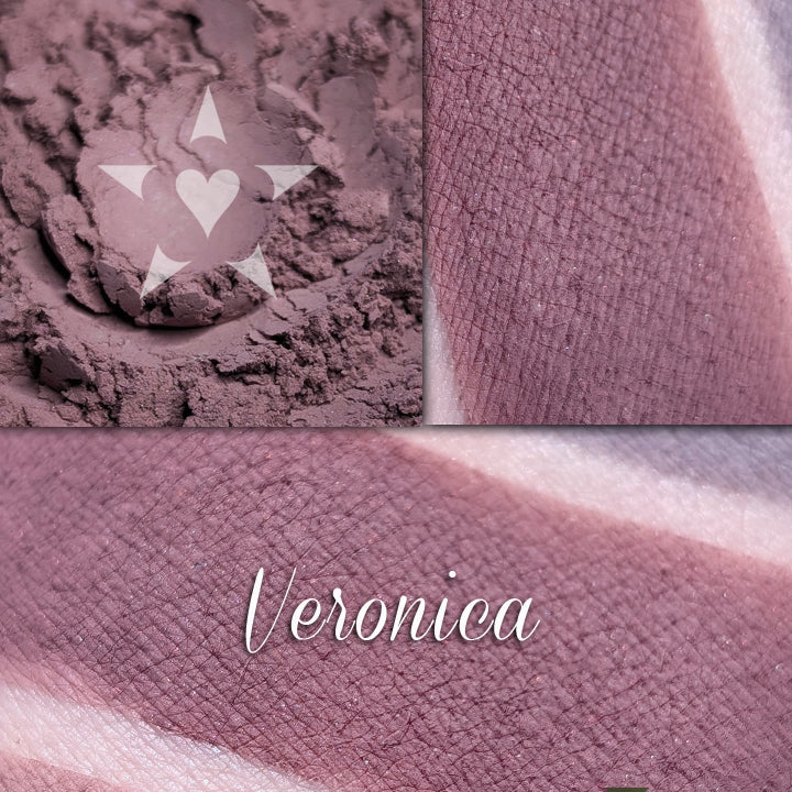 Veronica... In the Victorian language of flowers, Veronica (Speedwell) symbolized fidelity, loyalty and affectionate devotion. The quick, "speedy" wilting of the flowers once picked made them a fitting symbol for the sorrow of parting. From the Spring 2026 Collection, "Mauveine Elegy". This collection contains 10 permanent matte shades, 5 limited edition shimmers, a limited edition chromatic topper and a limited edition cheek color.